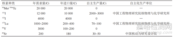 表2 我國主要反應(yīng)堆產(chǎn)醫(yī)用同位素的需求與供給情況