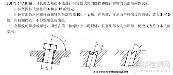 參考 GB/T3098.1-2000《緊固件機(jī)械性能 螺栓、螺釘和螺柱》“頭部堅(jiān)固性試驗(yàn)”8.8 試驗(yàn)方法,采用臺(tái)虎鉗、鐵錘等簡(jiǎn)易工具進(jìn)行敲擊試驗(yàn)。
