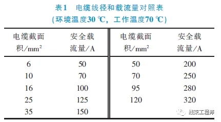 ②根據(jù)穩(wěn)態(tài)電流強度,確定高壓線束的截面積,在125℃下,常見銅芯電纜線徑截面積與載流量的匹配參見表1。