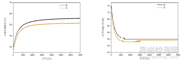 圖 7 電子控制器通電工作后內(nèi)部溫濕度變化曲線