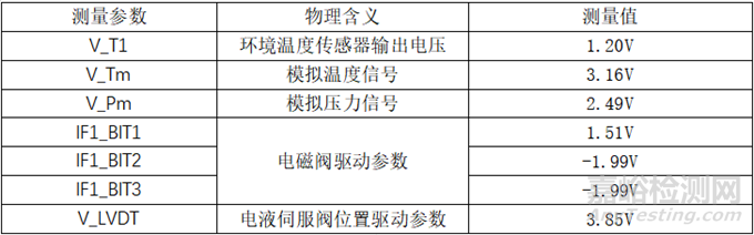 在開展自然環(huán)境暴露試驗過程中,每天對控制器通電兩小時進(jìn)行檢測,以模擬實際服役工況,利用機(jī)內(nèi)測試技術(shù)測試電路系統(tǒng)和工作電路功能性能是否正常。在檢測中,主要針對電子控制器內(nèi)部溫濕度的監(jiān)測以及上電運(yùn)行中各個工作參數(shù),包括環(huán)模擬溫度信號、模擬壓力信號、電磁閥驅(qū)動參數(shù)、電液伺服閥位置驅(qū)動參數(shù)。