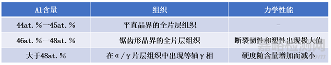 近片層組織的TiAl合金具有綜合平衡的力學性能,但等軸γ晶粒影響合金的蠕變性能。全片層組織的TiAI合金具有較好的斷裂韌性和高溫性能,但因晶粒粗大,合金的強度和塑性偏低。