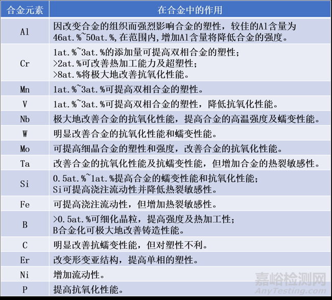 比較重要的γ-TiAI合金是基于兩相合金Ti- (45一49) Al而添加第三組元素而成的合金。TiAI合金的合金化元素主要分為三類。