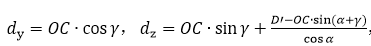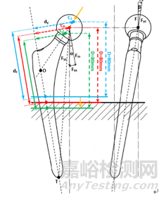 對(duì)于股骨柄柄部試驗(yàn),由4圖可推導(dǎo)出力臂dy和dz分別為