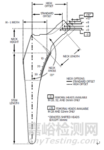 同一假體設(shè)計(jì)的股骨柄可以通過(guò)改變頸干角(neck Shaft Angle)、頸部長(zhǎng)度(neck Length)、股骨柄頸部與柄部的相對(duì)位置、球頭的內(nèi)錐深度等方式改變股骨柄的偏距(offset)和頸部高度(Neck height),匹配患者不同的解剖結(jié)構(gòu)需求,如圖3所示。