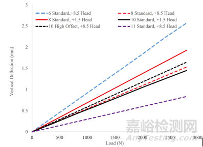 圖5 不同規(guī)格球頭與股骨柄組合載荷位移曲線(xiàn)