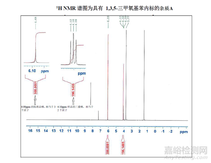 該項目中選擇1,3,5-三甲氧基苯作為內(nèi)標,因為考慮到它的峰不會對雜質(zhì)A樣品中存在的任何峰造成干擾,并在CDCl3中制備樣品,使兩種材料都以等摩爾量的形式存在。