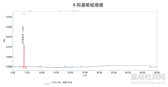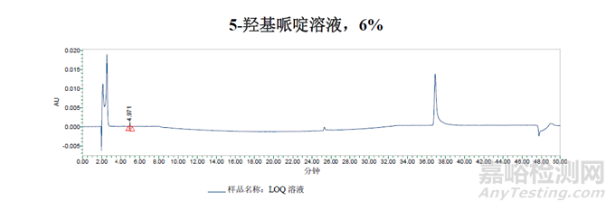 通過對雜質(zhì)圖譜的分析得出的結(jié)論是:用于雜質(zhì)B純度測定的方法二并不適用于測定5-羥基哌啶。稀釋劑需要更高的含水量,以防止早期洗脫組分的峰切分。梯度也需要從含水量更高的條件開始,為了從進樣峰中分離出5-羥基嘧啶峰。