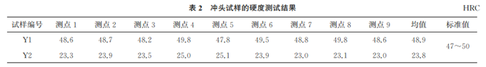 (1)送檢沖頭的化學(xué)成分和硬度符合標(biāo)準(zhǔn)要求。