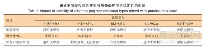 2.3 聚合物乳液與硅酸鉀的選擇和配比