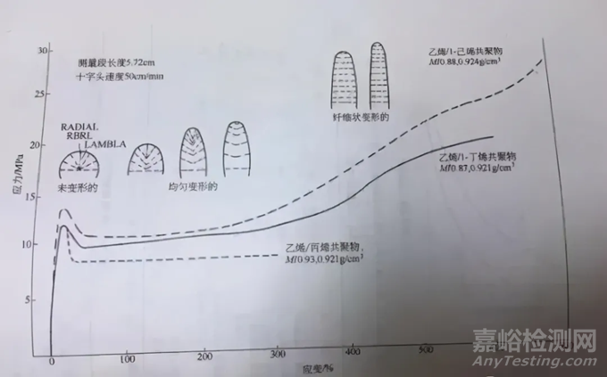 圖 | 短支鏈(共聚單體)類型對(duì)LLDPE的拉伸形變曲線的影響