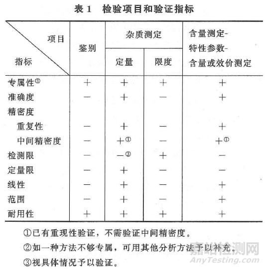 準(zhǔn)確度、精密度(包括重復(fù)性、中間精密度和重現(xiàn)性)、專屬性、檢測限、定量限、線性、范圍和耐用性。在分析方法驗證中, 須用標(biāo)準(zhǔn)物質(zhì)進(jìn)行試驗。由于分析方法具有各自的特點(diǎn), 并隨分析對象而變化, 因此需要視具體情況擬訂驗證的指標(biāo)。