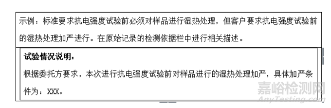 當(dāng)客戶對檢測有特殊的與標(biāo)準(zhǔn)相偏離的要求時,應(yīng)在檢測依據(jù)欄或原始記錄相關(guān)位置進(jìn)行描述。