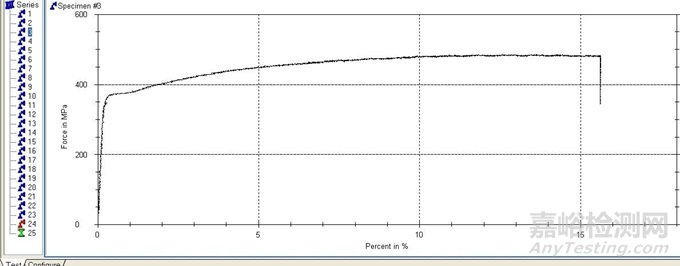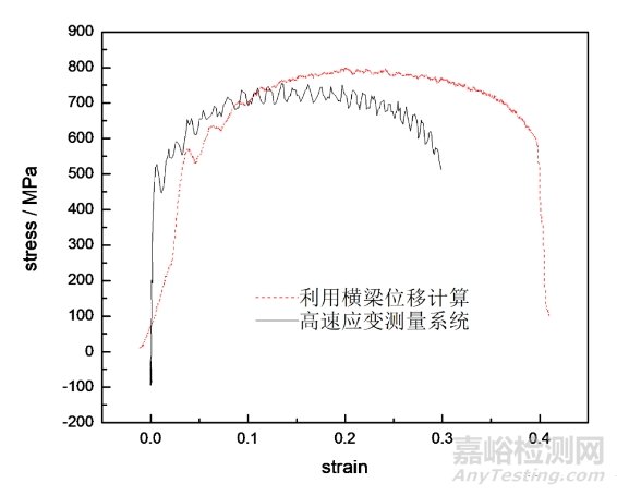 驗(yàn)證方法是測(cè)試試樣規(guī)格相同(試樣平行部長(zhǎng)寬一致,夾持端長(zhǎng)度不同),測(cè)試速率相同,測(cè)試材料相同(同一張板料上取樣),應(yīng)變測(cè)量設(shè)備相同,就是測(cè)力設(shè)備不同。試驗(yàn)后,對(duì)標(biāo)兩套力值測(cè)量設(shè)備所獲得的應(yīng)力-應(yīng)變曲線的一致性。