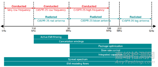 除了汽車電子,工業(yè)和個人計算應用的快速發(fā)展對更快上市、更具成本效益、更小尺寸電子產(chǎn)品的需求也隨之增長,這將不可避免地給EMI提出新的挑戰(zhàn)。需要各種進階的EMI緩解技術,以保證產(chǎn)品設計順利通過業(yè)界通用EMI測試。