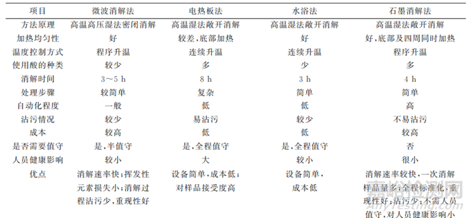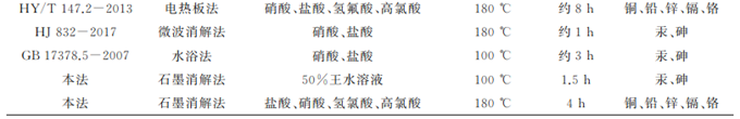 2.3 與國內(nèi)現(xiàn)行標(biāo)準(zhǔn)中消解方法比對(duì)