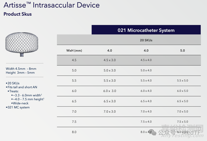 Artisse是一種自膨脹編織植入物,由雙層鎳鈦合金絲網(wǎng)制成,固定在近端和遠(yuǎn)端,并清楚地標(biāo)有不透射線的鉑標(biāo)記。Artisse能夠兼容0.021的微導(dǎo)管。其與Microvention的WEB有點(diǎn)類似,避免雙重抗血小板治療。