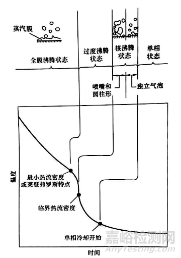 圖1 淬入可蒸發(fā)介質(zhì)中的三種冷卻機制的冷卻曲線