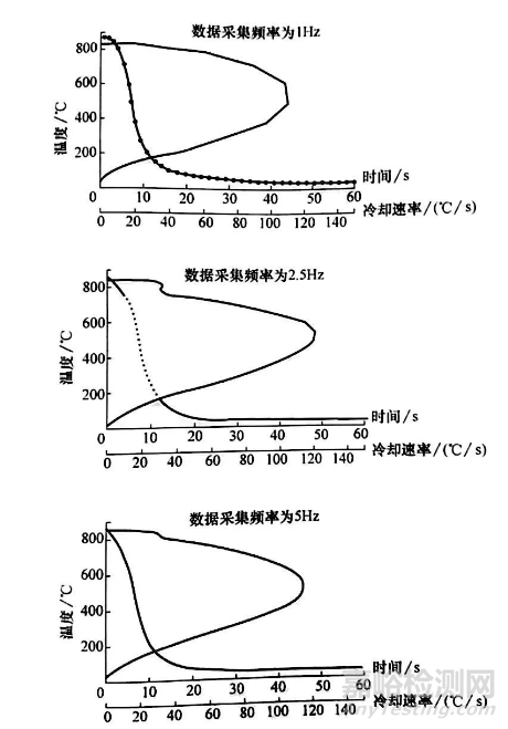 圖4 數(shù)據(jù)采集頻率對冷速曲線平滑度的影響