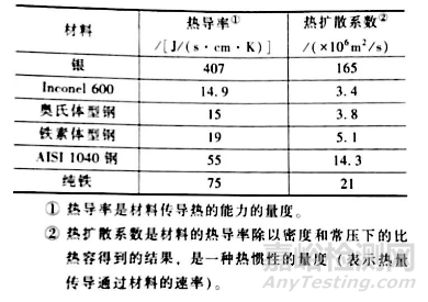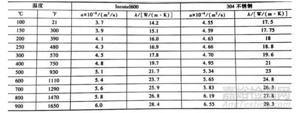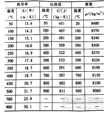 一些對鋼件冷卻時間的計算有用的數(shù)據(jù)見表4 。Inconel600和304奧氏體型不銹鋼的熱力學性能見表5。