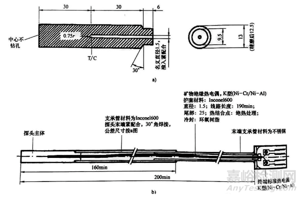 目前,國際上最常用的探頭是沃爾夫森(Wolfson) 探頭,它是Φ12.5mm×60mm (Φ0.5×2.4in) 的圓柱形Inconel 600探頭,其幾何中心嵌有一個K型熱電偶,如圖5所示。