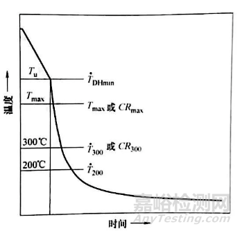 冷卻曲線分析的第一步,是對相同試驗條件下得到的時間-溫度冷卻曲線進行目測比較分析。這種目測分析的目的,主要是得到不同特征的冷卻過渡所需要的時間和發(fā)生時的溫度。對于不同的淬火冷卻介質(zhì)和淬火條件,可以將感興趣的冷卻曲線疊加起來進行比較評估。比較分析冷卻曲線數(shù)據(jù)有很多方法,目前最常用的方法有兩種。第一種方法是冷卻曲線參數(shù)化,騰西建議的參數(shù)包括: