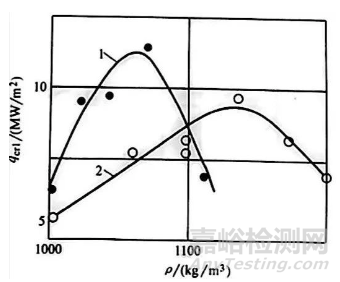 圖15 第一臨界熱流密度(qcrl)與鹽水溶液密度(p) 的關系