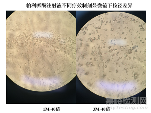 圖1:帕利哌酮注射液不同療效制劑顯微鏡下粒徑差異
