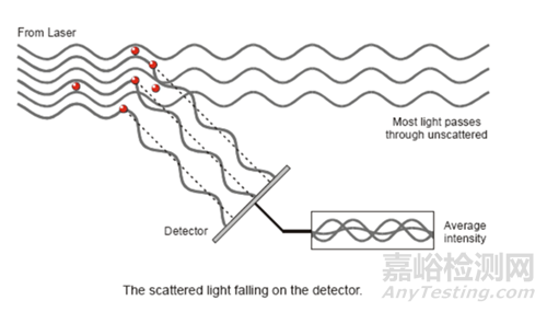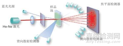 動態(tài)光散射,也就是DLS。當光通過膠體時,粒子會將光散射,從而被一定角度下的檢測器檢測。由于粒子實時進行的布朗運動,產(chǎn)生的散射光會隨時間變化而波動,檢測器將散射光信號轉(zhuǎn)化為電信號,再通過一系列運算處理,得到顆粒的粒徑及其分布(圖10)。