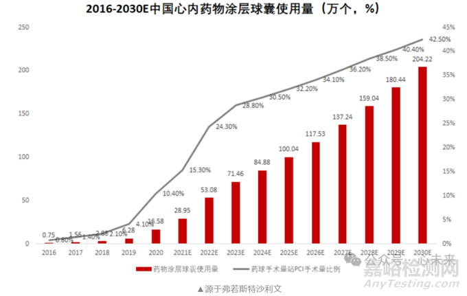 隨著藥物涂層球囊的臨床應(yīng)用價(jià)值逐步得到認(rèn)可,藥物涂層球囊行業(yè)逐步開(kāi)始發(fā)展。相較于藥物洗脫支架,藥物涂層球囊介入治療的優(yōu)點(diǎn)在于無(wú)聚合物基質(zhì)、無(wú)金屬支架殘留,有效減少內(nèi)膜炎癥反應(yīng),降低血栓形成的風(fēng)險(xiǎn)。此外藥物涂層球囊植入后,只需服用1-3個(gè)月的雙聯(lián)抗血小板藥物,大幅縮短雙抗治療時(shí)間(一般藥物洗脫支架植入后,需要服用1年左右的雙聯(lián)抗血小板藥物)。在冠脈介入治療領(lǐng)域,藥物洗脫支架仍然是冠脈介入治療的主流器械,支架內(nèi)再狹窄是藥物涂層球囊介入治療的優(yōu)選適應(yīng)癥,隨著中國(guó)PCL手術(shù)量不斷增長(zhǎng),藥物涂層球囊同樣充滿發(fā)展空間。加之主動(dòng)脈及外周血管疾病檢出率提高,小血管病變和分叉病變治療需求隨之提高。