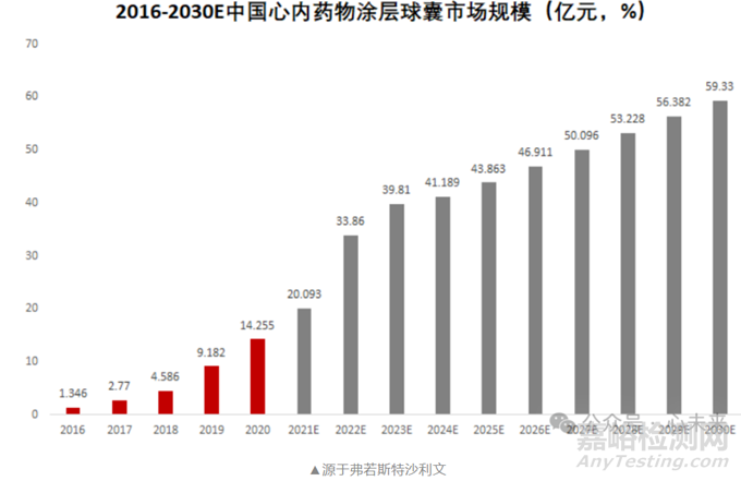 根據(jù)弗若斯特沙利文預(yù)測(cè)數(shù)據(jù),國(guó)內(nèi)冠脈藥物涂層球囊的市場(chǎng)規(guī)模從 2016 年的 1.35 億元大幅增長(zhǎng)至 2021 年的 20.09 億元,預(yù)計(jì) 2025 年市場(chǎng)規(guī)模將進(jìn)一步攀升至 43.86 億元,2030 年預(yù)計(jì)將達(dá)到 59.33 億元。