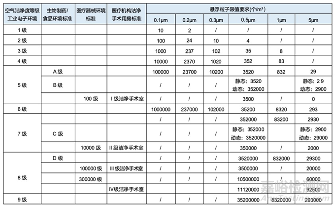 2、國內(nèi)空氣潔凈度級別劃分