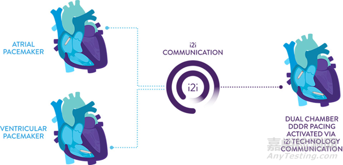 采用i2i通訊技術(shù):是雅培專有的互聯(lián)技術(shù), 該技術(shù)使用高頻脈沖,借助體內(nèi)血液的自然導(dǎo)電特性傳遞信號(hào),使得兩個(gè)無導(dǎo)線起搏器互相連接,達(dá)成兩個(gè)無導(dǎo)線起搏器同步且協(xié)調(diào)心臟起搏的效果。