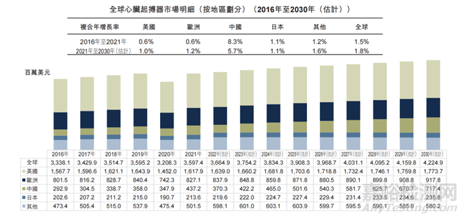 2021年,美國的規(guī)模為16.17億美元,為全球最大(45.0%)的心臟起搏器市場。中國預(yù)期將成為增長最快的心臟起搏器市場。
