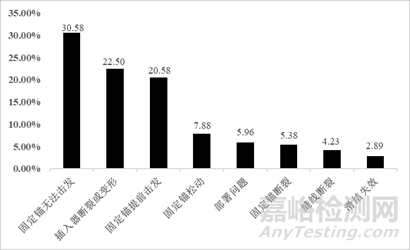 全內(nèi)半月板縫合系統(tǒng)的結(jié)構(gòu)設(shè)計(jì)若不合理將導(dǎo)致產(chǎn)品在臨床使用中出現(xiàn)功能失效(如產(chǎn)品發(fā)生永久變形導(dǎo)致失效或不能充分承受載荷),無(wú)法完成其臨床預(yù)期功能。開展充分的性能研究,是評(píng)估產(chǎn)品功能失效風(fēng)險(xiǎn)的重要手段,也是產(chǎn)品設(shè)計(jì)驗(yàn)證的重要環(huán)節(jié)。在全內(nèi)半月板縫合系統(tǒng)的研發(fā)階段,需根據(jù)產(chǎn)品特點(diǎn)及同類產(chǎn)品臨床上的不良事件確定相關(guān)失效風(fēng)險(xiǎn)源。目前很多國(guó)家已建立了醫(yī)療器械不良事件監(jiān)測(cè)系統(tǒng),美國(guó)的MAUDE數(shù)據(jù)庫(kù)屬于全數(shù)據(jù)庫(kù),收錄了按照FDA法規(guī)進(jìn)行報(bào)告的所有不良事件,信息量較大。通過(guò)檢索MAUDE數(shù)據(jù)庫(kù),以在境內(nèi)外同時(shí)上市、國(guó)產(chǎn)化程度較高的部分半月板縫合系統(tǒng)為目標(biāo),匯總了從2016年到2021年的不良事件共520條,針對(duì)查詢結(jié)果逐條進(jìn)行分析,匯總結(jié)果如圖2所示。