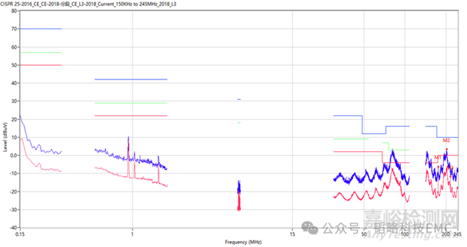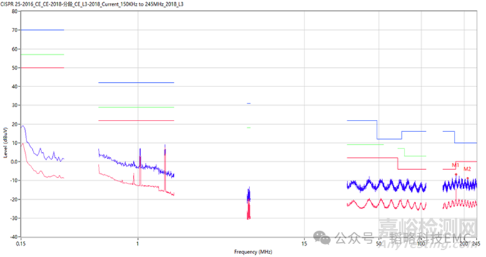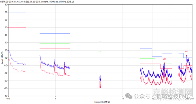 這是一款車載產(chǎn)品,目前測(cè)試不通過的項(xiàng)目是電流法,測(cè)試標(biāo)準(zhǔn)是CISPR 25-2016 ,按照標(biāo)準(zhǔn)進(jìn)行擺放測(cè)試,我們得到下面的數(shù)據(jù):