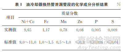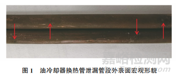 某公司生產(chǎn)的油冷卻器換熱管材料為鎳白銅,牌號為BFe10-1-1,狀態(tài)為回火,回火介質(zhì)為液氨,回火溫度為750℃,回火時間為2h。該油冷卻器的被冷卻介質(zhì)油在管外,冷卻水在管內(nèi),冷熱介質(zhì)互不接觸。該油冷卻器在使用9~12個月后出現(xiàn)泄漏現(xiàn)象。拆開油冷卻器,卸下?lián)Q熱管后,發(fā)現(xiàn)管路上多個位置都存在一定數(shù)量的細小孔洞。研究人員采用宏觀觀察、化學(xué)成分分析、金相檢驗、掃描電鏡(SEM)和能譜分析、原子吸收光譜(AAS)分析等方法分析了管道腐蝕泄漏的原因,以避免該類問題再次發(fā)生。