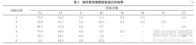 對換熱管工作環(huán)境進行調(diào)查,發(fā)現(xiàn)換熱管泄漏管段附近有一家水泥廠,該水泥廠可能使銅管內(nèi)冷卻水中的Ca、Na、Mg、S、Cl等元素含量升高。