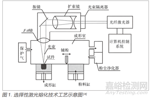 選擇性激光熔化技術(shù)如圖1所示,通過激光完全熔化原材料粉末并且能夠快速降溫,使成品的微觀結(jié)構(gòu)發(fā)生改變從而能夠獲得具有良好的性能和精度的優(yōu)質(zhì)產(chǎn)品。