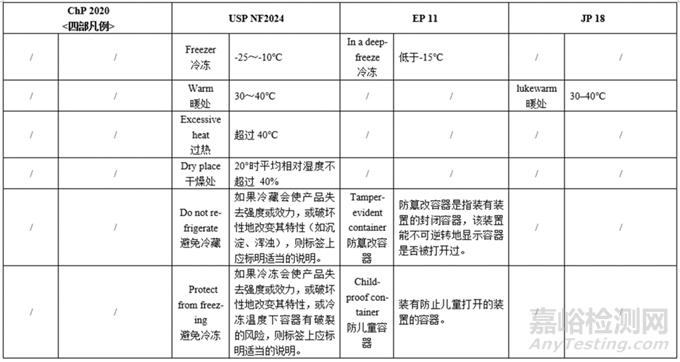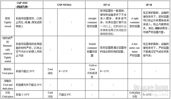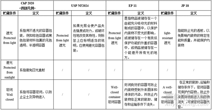 小結(jié):各國藥典凡例/通則的貯藏條件均不同:
