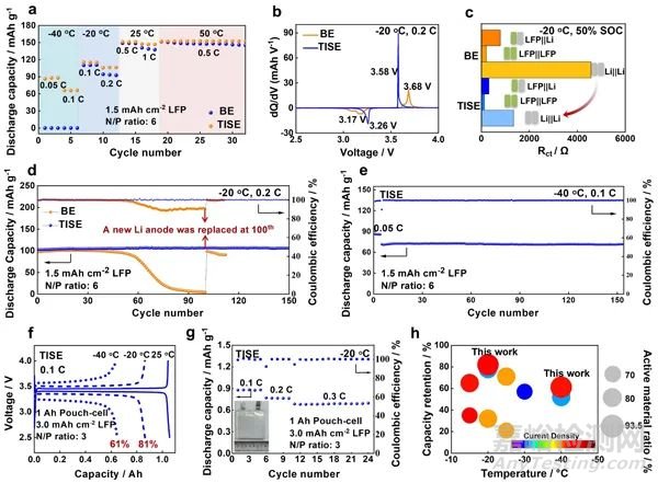 圖2. 低溫鋰金屬電池的性能。