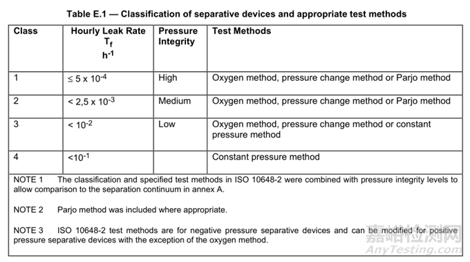 ISO10648-2:1994中給出了分級(jí),(ISO14644-7:2004,GB/T 25915.7:2010,EJ/T 1096:1999對(duì)于密封性的分級(jí)標(biāo)準(zhǔn)都參考ISO10648-2,在這里不再贅述)。