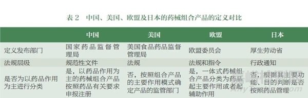 1.5 中國(guó)、美國(guó)、歐盟及日本藥械組合產(chǎn)品定義的比較