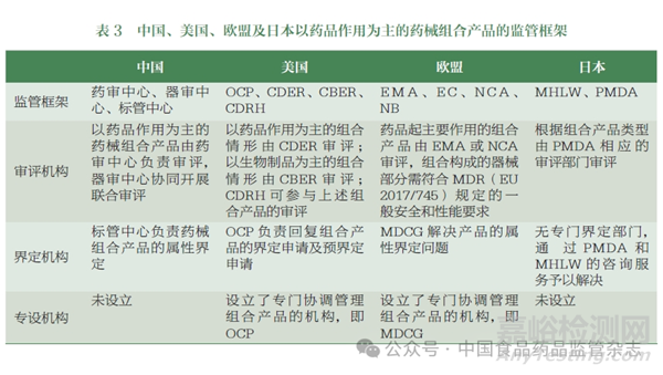 2.5 中國(guó)、美國(guó)、歐盟及日本藥械組合產(chǎn)品的監(jiān)管情況比較