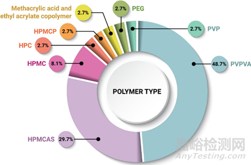 從圖2可知,PVPVA存在于大多數(shù)ASD中(百分比:48.7%),而HPMCAS是第二常見的(百分比:29.7%)。試圖推測(cè)在此數(shù)據(jù)集中選擇聚合物的原因:
