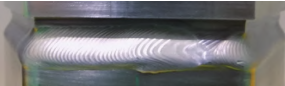 所以在X射線圖像中,無法區(qū)分沿射線透照方向上的表面缺陷與內(nèi)部缺陷。外套管與過渡接頭對接氬弧焊在焊接過程中會由于能量的不連續(xù)性,以脈沖形式釋放能量導致焊接過程中金屬融化不連續(xù),形成類似魚鱗的紋路,如圖4所示。