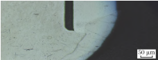 氣脹為包殼管環(huán)焊縫根部咬邊的現(xiàn)象;氣脹的直接危害是壁厚減薄,且存在應力集中,降低焊縫強度的風險:依據(jù) GB/T 11809-2021《壓水堆燃料棒焊縫檢驗方法金相檢驗和射線照相驗》標準,如圖16所示的缺陷應評定為氣脹。