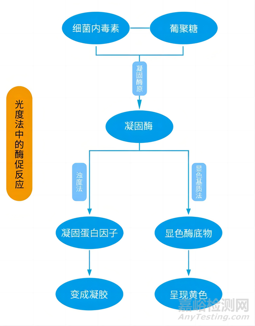 光度法(包括濁度法和顯色法)可定量檢測內(nèi)毒素的含量,其中濁度法是通過內(nèi)毒素與鱟試劑的C因子產(chǎn)生反應,由此激活的凝固酶會切斷凝固蛋白原中的精氨酸肽鏈,形成凝膠狀蛋白;而顯色基質(zhì)法是通過測定內(nèi)毒素與鱟試劑反應時產(chǎn)生的凝固酶使某種特殊底物釋放出來的生色團的量,來檢測內(nèi)毒素含量的鱟試驗法。