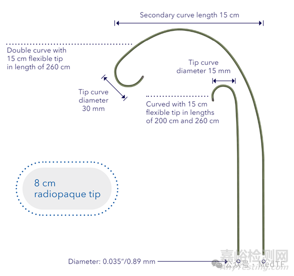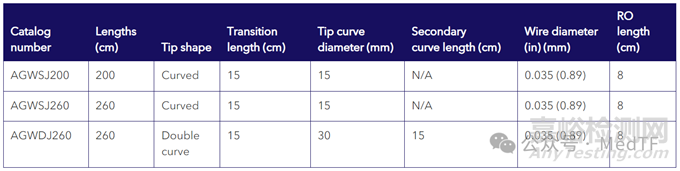 長(zhǎng)度200和260cm,單彎的Steerant適用于EVAR 手術(shù)
