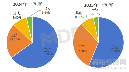 2024年第一季度,我國(guó)消化道內(nèi)窺鏡約有65.07%的市場(chǎng)份額來(lái)自于三級(jí)醫(yī)院,相比增加8.79%。